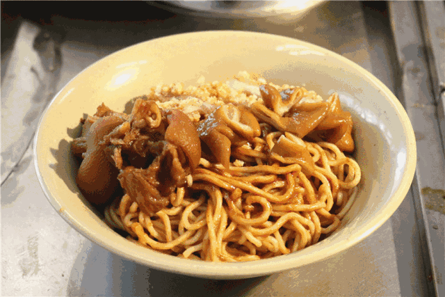 △干拌面漳州人吃面的花样可不少。把碱面团成饼,摊熟后淋上沙茶酱,搭配卤味和炸物,便成独具特色的漳州手抓面;或者用碱面做成的面饼,直接刷上酱料,卷入油炸过的豆干,一份豆干面里,也有别处难得一见的漳州特色;而这里的沙茶面,也因为加入了花生酱,比厦门多了一层风味。