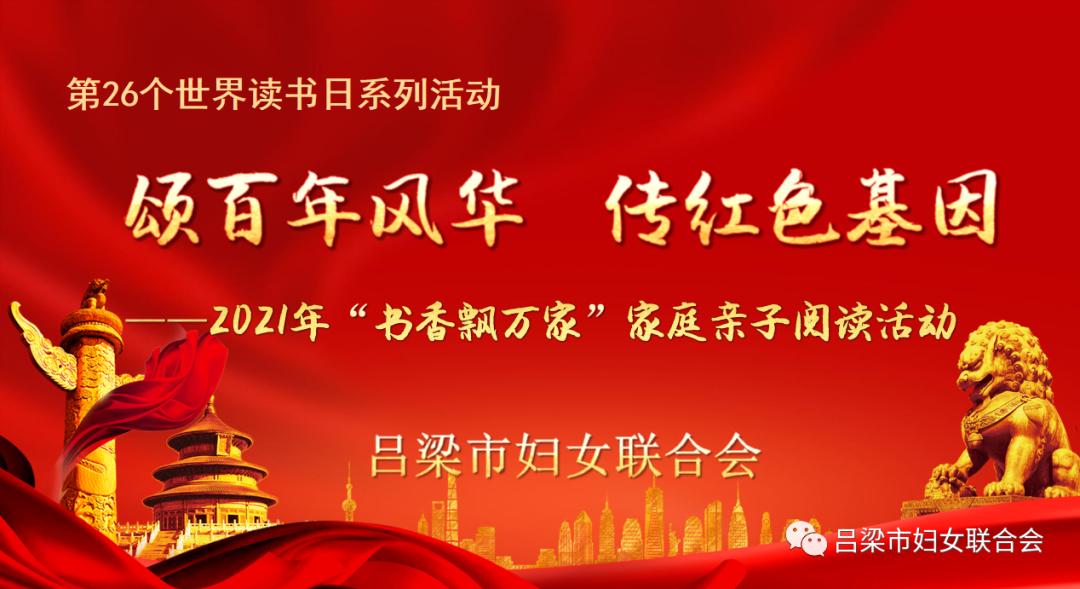 2021年是中国共产党成立100 周年,为深入贯彻落实习近平总书记在党史学习教育动员大会上的重要讲话精神,回顾党的光辉历程,讴歌党的丰功伟绩,继承和发扬党的优良传统和作风,引导全市广大家庭学党史、知党恩、跟党走,按照全国妇联、省妇联的安排部署,在第26个世界读书日即将到来之际,吕梁市妇联将以“颂百年风华 传红色基因”为主题,在全市深入开展2021年“书香飘万家”家庭亲子阅读活动。近期,由吕梁市妇联主办,吕梁综合广播《书香吕梁》栏目联合吕梁市家庭教育协会特别策划推出“学党史、诵经典、传承红色基因”家庭亲子诵读征集活动。