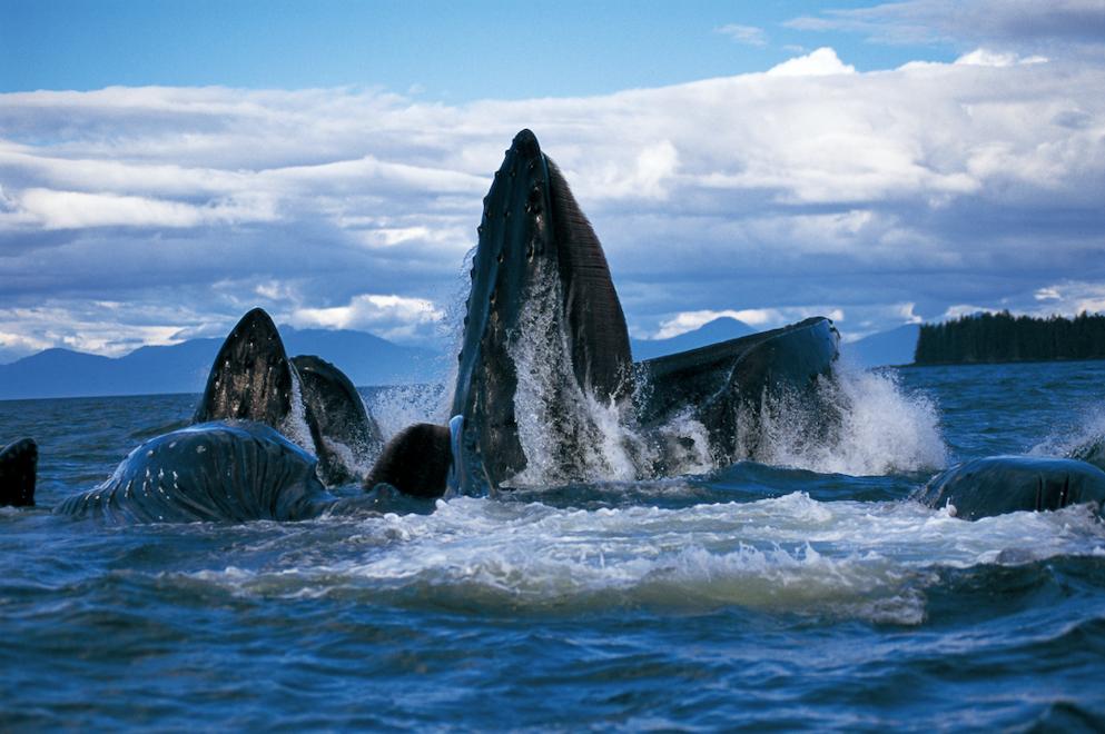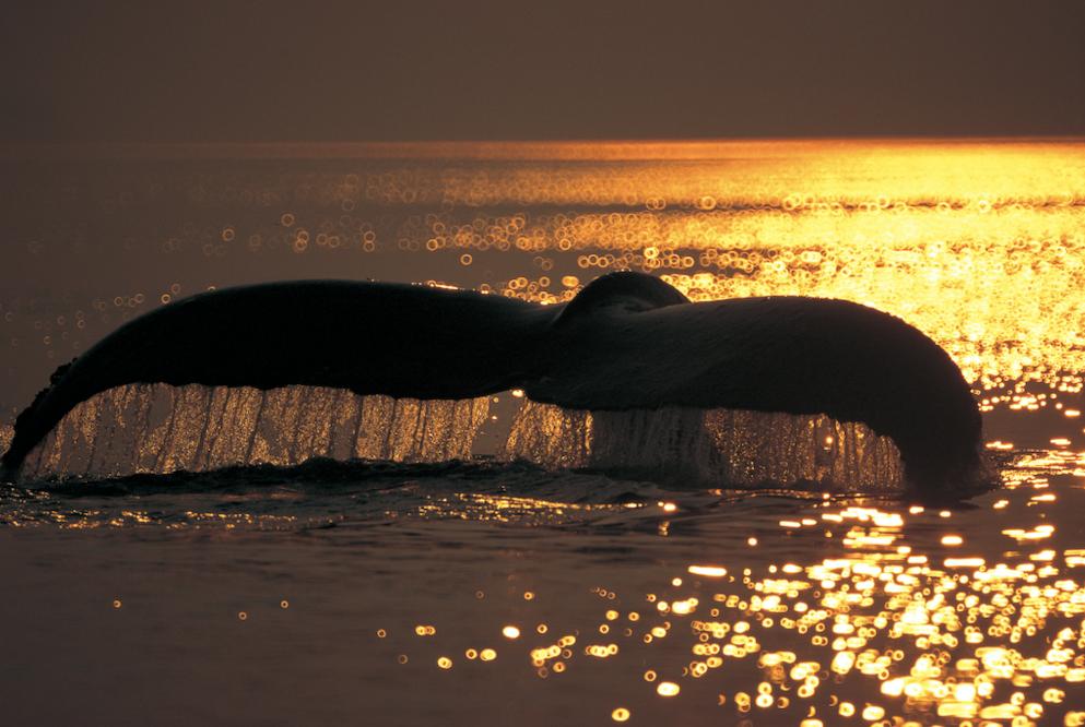 一天傍晚,我们遇见了一小群座头鲸。我们坐着小船,慢慢跟在一边喷水一边前进的鲸鱼身后。两边离得那么近,我们甚至能感觉到鲸鱼呼出的气。多么震撼人心的风景啊。四周尽是冰川与茂密的原生林,在悠久的时光大潮中,所有的自然元素和谐共存,生生不息。朋友靠着船舷,沐浴着徐徐微风,目不转睛地凝望大力前行的鲸鱼群。