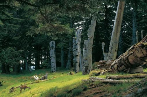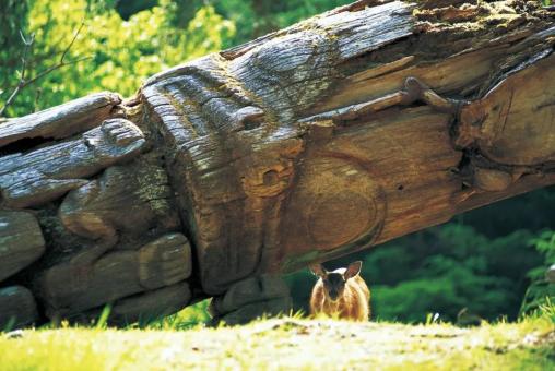 星野道夫前往美加国境附近的太平洋孤岛“夏洛特皇后群岛”旅行,为的是一睹当地印第安人在神话时代制作的古老图腾柱。在巴掌大的海滨深处,已经风化了的图腾柱矗立在水边。许多柱子已经歪了,有好几根躺倒在地。它们布满苔藓,甚至长出了新的植物。这时,一只走出森林的白尾鹿彷徨其间,边走边啄食青草。星野道夫回忆道,“那是自然在人类消失后缓慢却又切实地收回领土的风景。”第一段体验,是上小学时碰巧在家附近的电影院看到的一部电影,名叫《蒂科和鲨鱼》(Tiko and the Shark)。