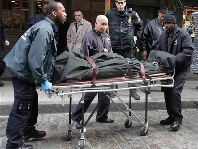 马克·麦道夫的尸体被运出他的公寓麦道夫在世的另一个儿子安德鲁·麦道夫(Andrew Madoff)于2014年因癌症去世。