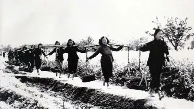 20世纪50年代,丁长华(右一)带领花木兰队的姐妹们参加农业生产。那是一个激情燃烧的岁月。当时,花木兰队像一面鲜艳的旗帜召唤着浒湾公社的年轻人。不到一年,成员增加到14人。1959年元月,在党组织的帮助下,丁长华又发起组建了火箭队,并在火箭队内部开展劳动竞赛。由于他们苦干加巧干,火箭队成立第一年就创造丁家村有史以来的高产纪录。全队水稻两季亩产1070斤,棉花亩产皮棉达400多斤。