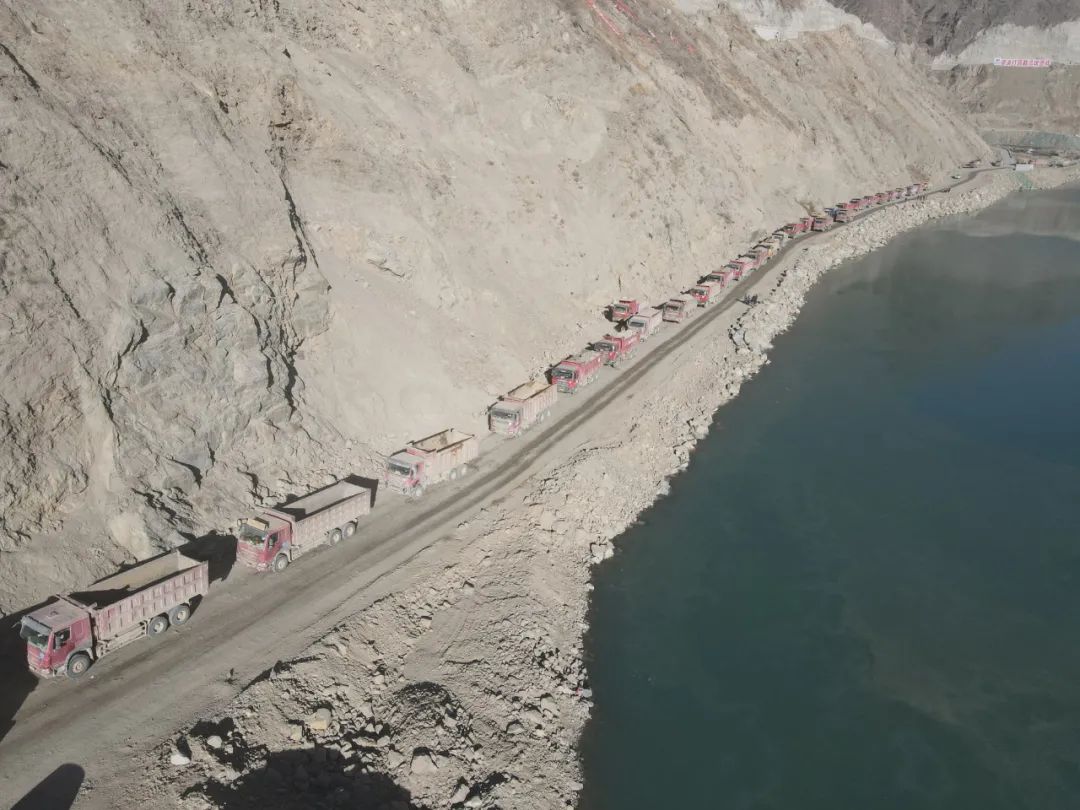 围堰填筑料运输车辆排成一字长龙攻克难题,他半年走坏3双鞋