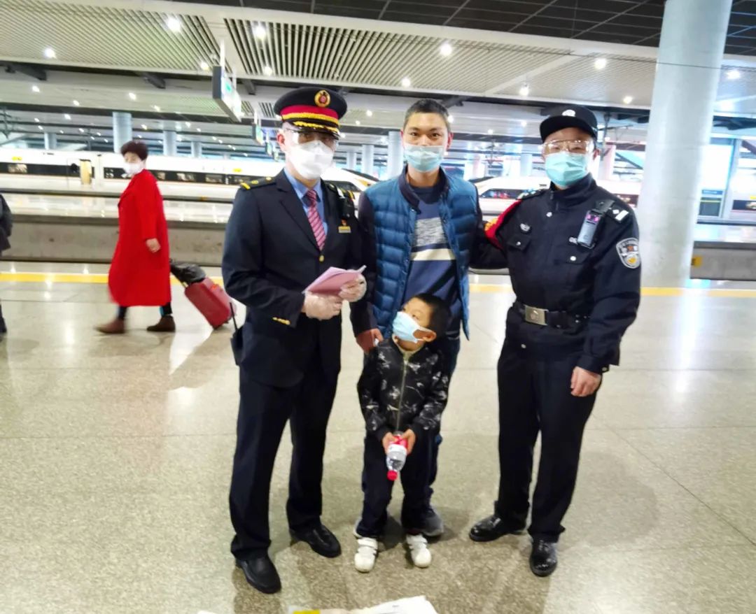 小男孩的情绪平复后,说出了自己的名字和妈妈的电话号码。胡志良立即和孩子妈妈取得联系,得知他们的目的地是杭州,胡志良随即联系孩子父亲到杭州东站站台接车。