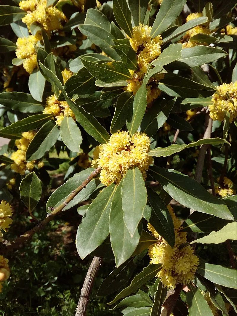 月桂的花序 | Ανώνυμος Βικιπαιδιστής / wiki commons月桂的新鲜叶片,闻着气味并不浓烈,只有把它们晒干制成香叶,才能赋予食物香甜而刺激的味道,美味的根源来自叶片中的的芳樟醇和桉叶油素。除了月桂之外,某些气味类似的樟科植物,如加州月桂(Umbellularia californica),其叶片的干制品也被称为香叶(bay leaf)。