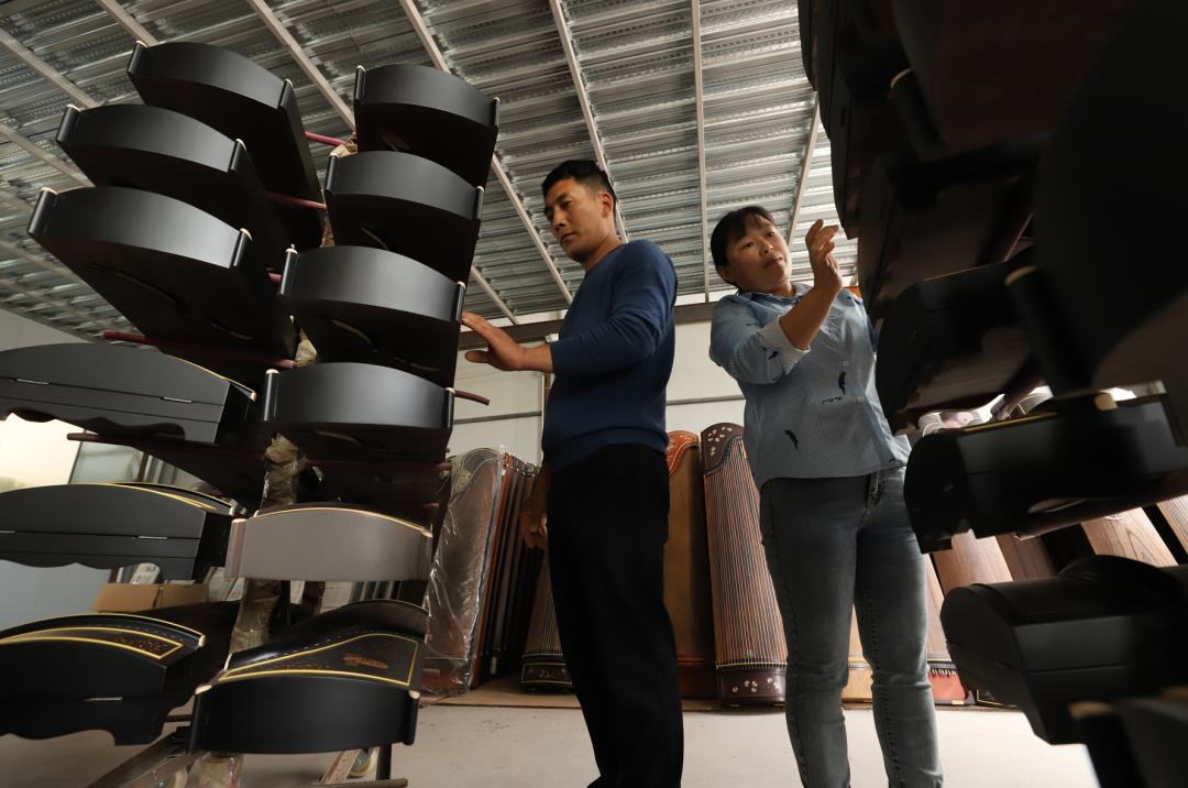 古筝、古琴、琵琶、二胡、阮是每个院子里的主角,而院子里的主人都忙碌成了匆匆的身影。作为乡村振兴的优秀代表村,这里的乐器已经遍布全国并辐射到国外。而今天的徐场人他们的目标就是要让兰考的桐花香飘的更远更远。