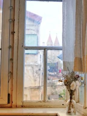 “小确幸”西餐厅名副其实,坐落于中山路附近街道隐蔽的院子里,走上老房子吱嘎作响哦木质楼梯,就可以进入这间窗户正对天主教堂的屋子。黄昏时刻可以可以看到对面粉色天空下的天主教堂,很难不感觉到小确幸。