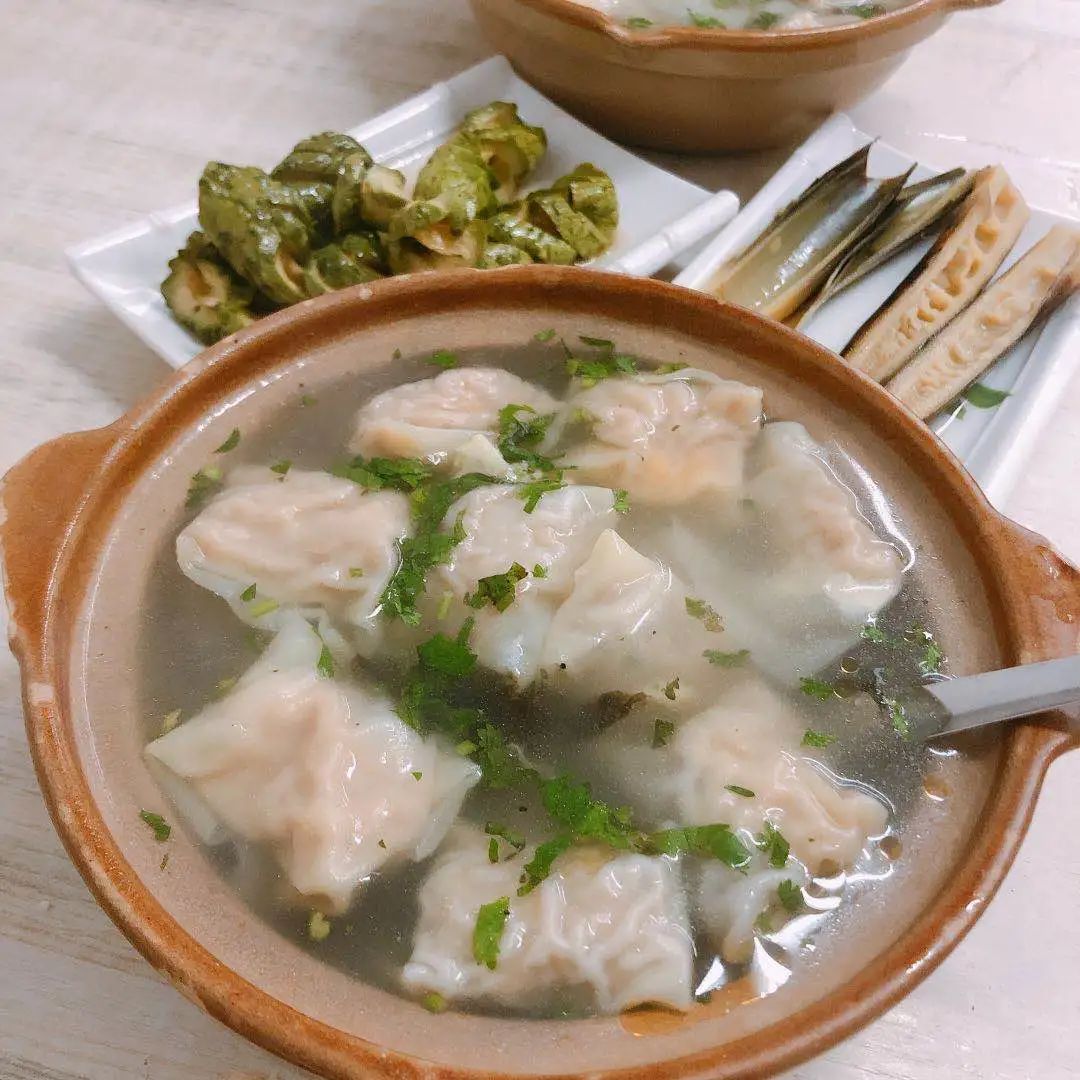 船歌的墨鱼和黄花鱼水饺。©Xyfaye每次回青岛都得吃一次好美味砂锅馄饨,这家小店开了十多年,看似平平无奇,但是吃过就忘不掉。除了常见的虾仁、蛤蜊馅,在这里你还可以吃到黄花鱼、海肠、虾虎、蛎蝗馅的馄饨。我最喜欢的还是皮蛋馅的馄饨,听起来有点黑暗,吃一口就被惊喜!皮蛋的独特香气与肉香结合,混合着砂锅烹饪的鲜美汤汁,在口中交织、融化,香气绵长延续,幸福从味蕾直达内心。