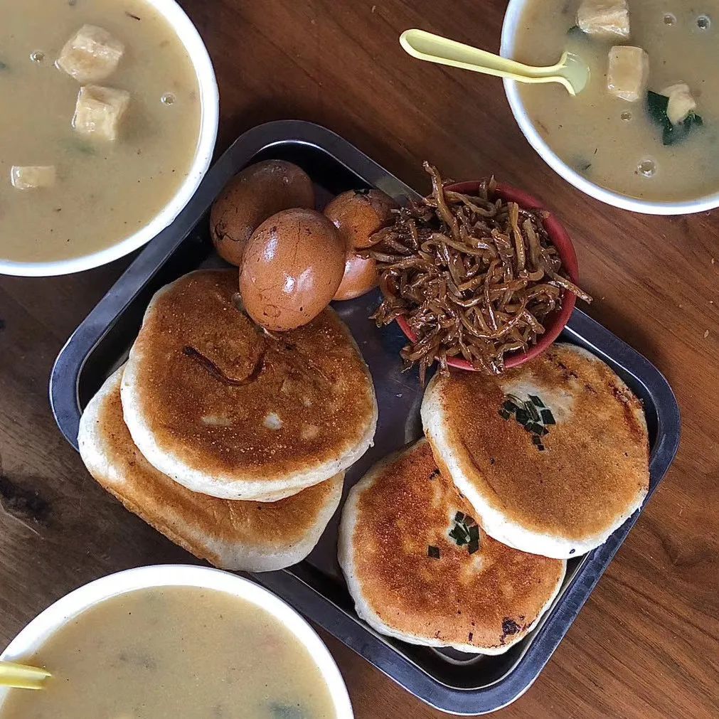 老梁记得火烧和甜沫。©微博:腊月十六呀但是老梁记的精髓一定是甜沫,这或许是老板起名时把甜沫放在肉火烧前面的原因。甜沫其实根本不甜,是一种以小米面熬煮的咸粥,里面放上花生碎、粉条、豆泡、菜叶,撒上胡椒粉,热乎喝上一口,恰到好处的咸味和微微的辣,整个人都舒服又暖和。