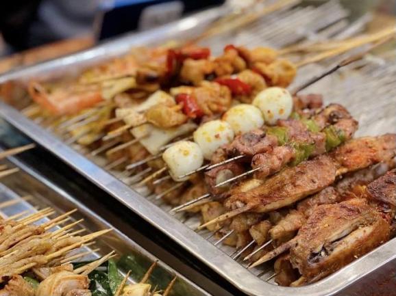 老谢野馄饨的烧烤。©大众点评:萌基家的小姐姐由于路边摊不方便收拾,野馄饨的碗都会套上塑料袋,塑料袋是精髓,不套塑料袋的馄饨就还不够“野”。碗底放上盐巴、榨菜、紫菜,浇上热腾腾的棒骨汤,一口馄饨一口汤,汤里还有“漏网”的骨髓。