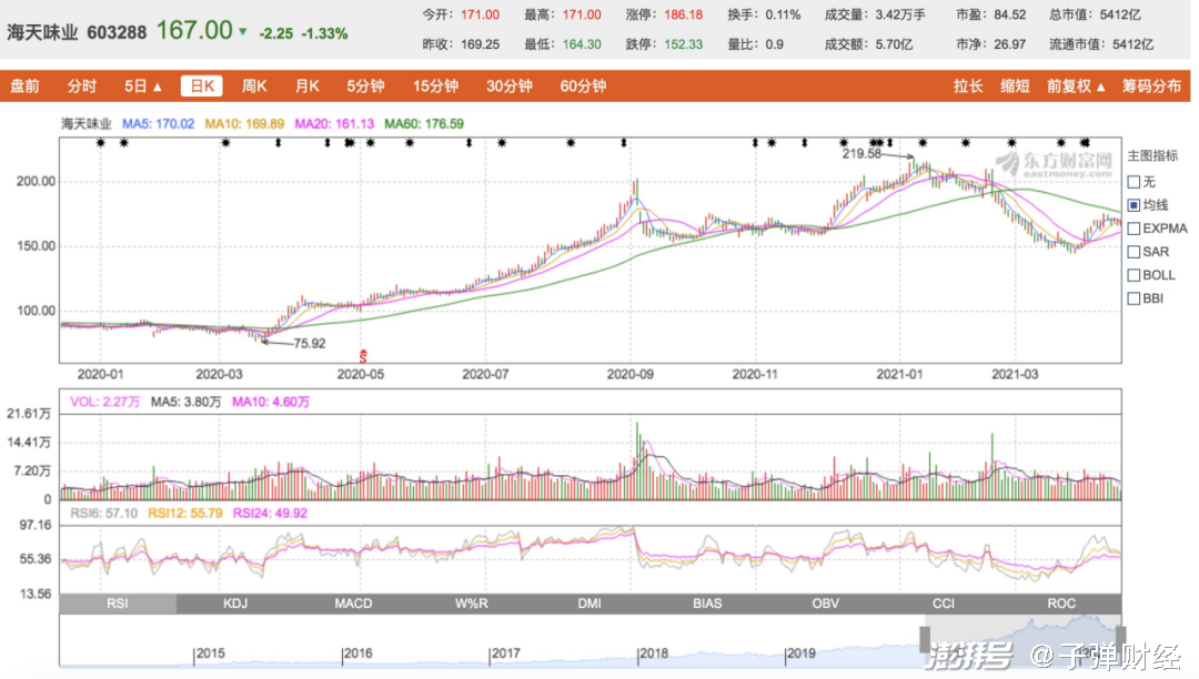 图 / 东方财富网因此,投资者关于海天味业股价触顶的担忧不少。