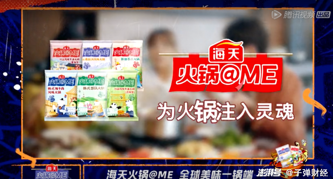 在营销上,海天赞助了综艺《吐槽大会》第五季宣传“火锅@ME”火锅底料产品。此前,海天曾多次赞助该综艺,宣传产品为蚝油和黄豆酱。不难看出,海天味业宣传重心的变化。