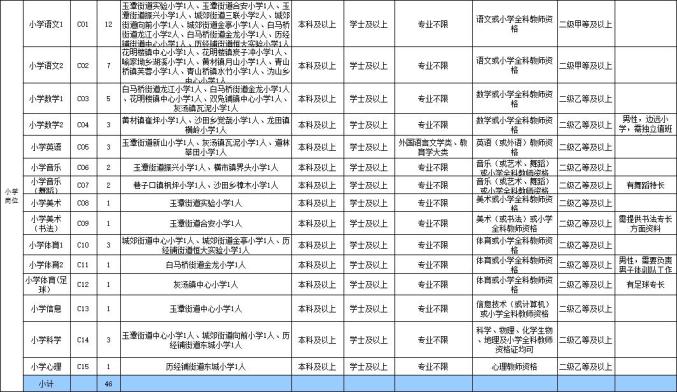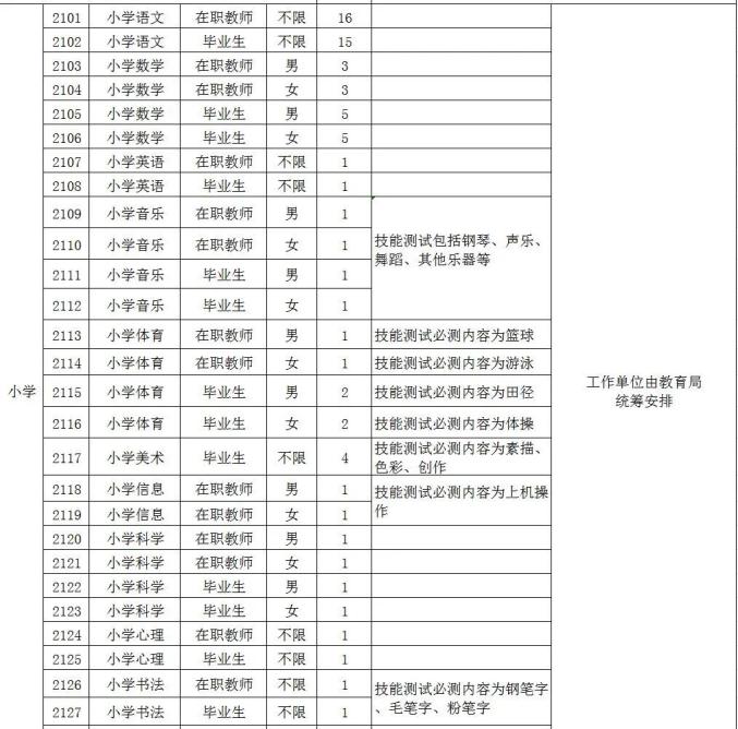 (5)专业要求:报考英语、音乐、美术、体育、书法、心理、特殊教育岗位的人员要求所学专业与报考学科一致。