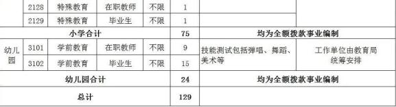决定面向社会公开招聘教师129名,其中中小学教师105名,幼儿园教师24名。