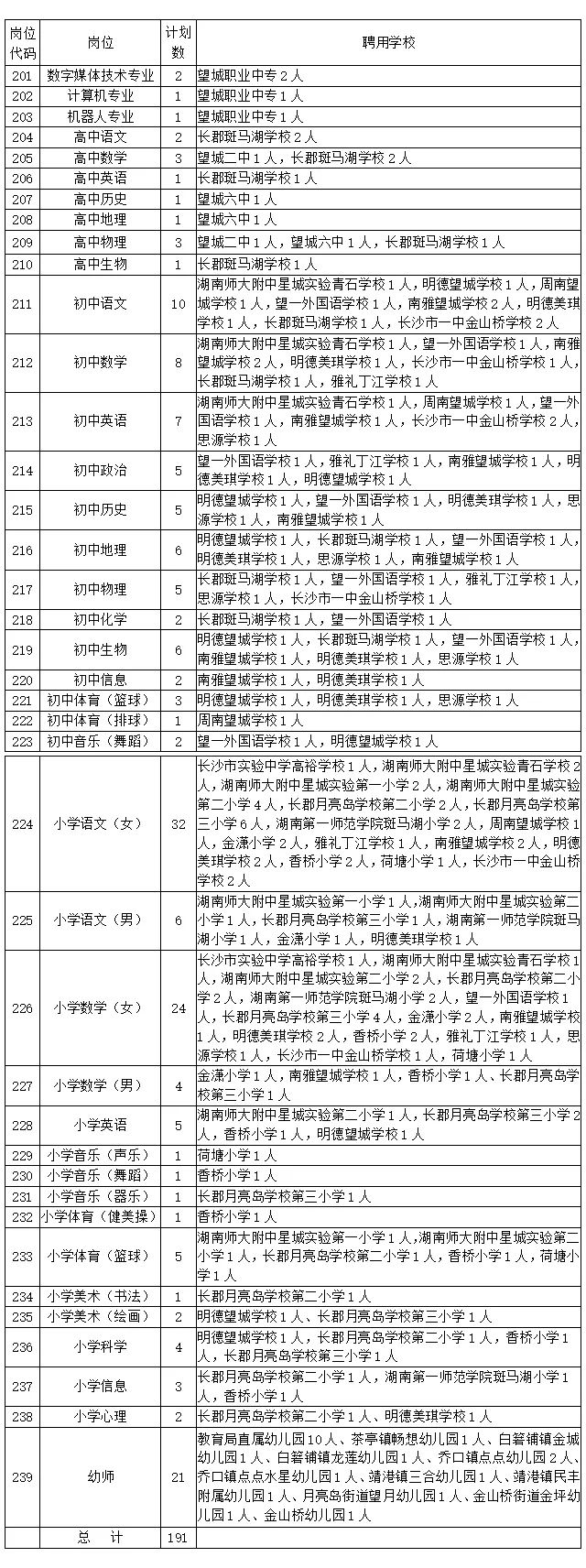 《2021年长沙市芙蓉区公开招聘中小学幼儿园教师岗位表》
