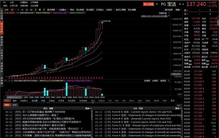 LEXCX的第五大重仓股是宝洁公司(Procter & Gamble Co.),持股市值为3500万美金,仓位占比5%。宝洁公司创立于1837年,是全球最大的日用消费品巨头之一,这家寿命接近两百年的公司市值依然不断创新高,当前总市值为3380亿美金。宝洁公司自1986年低点以来,涨幅高达80倍以上。