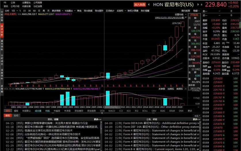 成立于1885年的霍尼韦尔,市值也在本周刚刚创出历史新高。