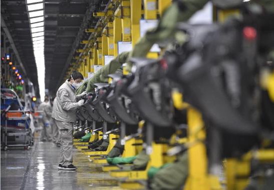 2月19日,一汽大众成都分公司工人在总装车间内作业。刘坤摄(新华社)