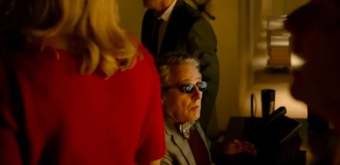 《拜拜笨蛋》中的失明管理员其次,关于人物的旅途,编剧的想象力完全被剧情最终通向的那个目的——找到儿子——死死地牵制住:因此人物在途中的所有体验扁平化,无法具有纵深感。失智的妇产科医生找到回家的路,为的是能够和自己的妻子重逢,进而让后者告知女主自己儿子的下落。与之相比,档案管理员通过记忆指路这一桥段似乎在某种程度上还原一些公路电影的本色:它需要一种偏离主叙事干道的漫游,需要将叙事的重点时不时从主要人物和事件中移开,投入到一个小小分岔上,进入另一个叙事层。一如专注力被思绪冲散所具有的散漫感。当失明的管理员坐在女主的车上,向她描述自己脑海中的城市图景之时,玻璃上城市倒影和人物面庞的叠印想我们提供了一个双重的时空共存的可能性,一种舒展开来的诗意。