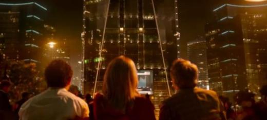 《拜拜笨蛋》中三位主角坐在长椅上相比之下,对于空间的设置,最为败笔的当属影片结尾之处:当三位主角坐在长椅上,面对女主儿子办公所在的高楼大厦之时,这样的场景很难不让我们想起欧容《登堂入室》的最后一幕。《登堂入室》的最后一幕堪称点睛之笔,与整部影片形成的互文关系堪称绝妙。但《拜拜笨蛋》中这一幕让人物更进一步沦为没有生命力的棋子,男主的电脑屏幕与大楼的监控镜头合力让大厦中的每一个人成为微缩景观中一个个微不足道的塑料人,他们存在的意义(包括女主的儿子和他的心上人)并非让主角深入另一个真实,而是快快促成一门恋情。