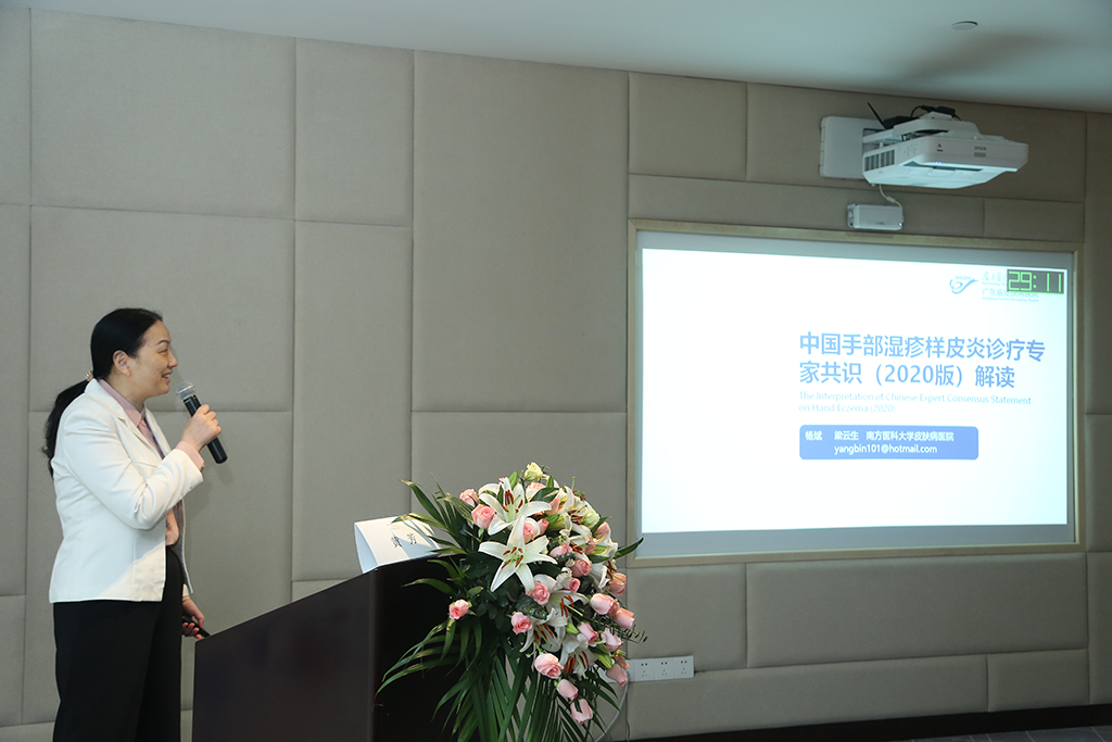 广东省精准医学应用学会皮肤性病分会常务委员、珠海市人民医院、黄芳主任做《中国手部湿疹诊疗专家共识解读》专题报告