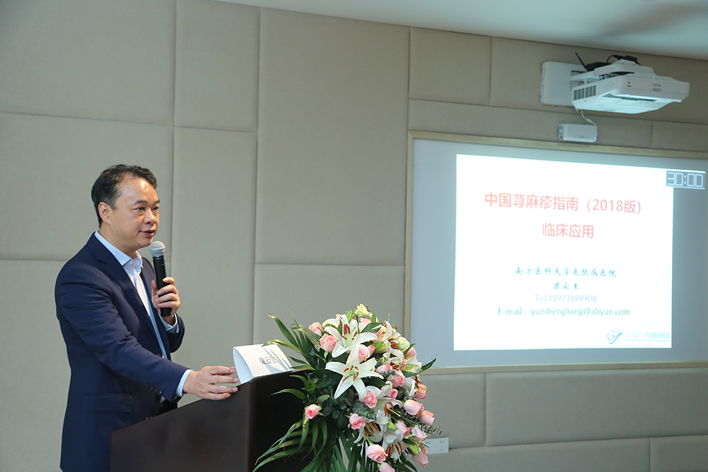 广东省精准医学应用学会皮肤性病分会主任委员、南方医科大学皮肤病医院皮肤科梁云生主任分别做《中国慢性荨麻疹诊疗指南解读》、《克立硼罗乳膏临床应用》专题报告