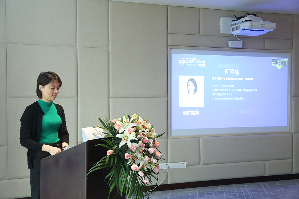 广东省精准医学应用学会皮肤性病分会委员、南方医科大学皮肤病医院何雪瑜护长做《湿包治疗-广东省卫生计生适宜技术推广项目》专题报告