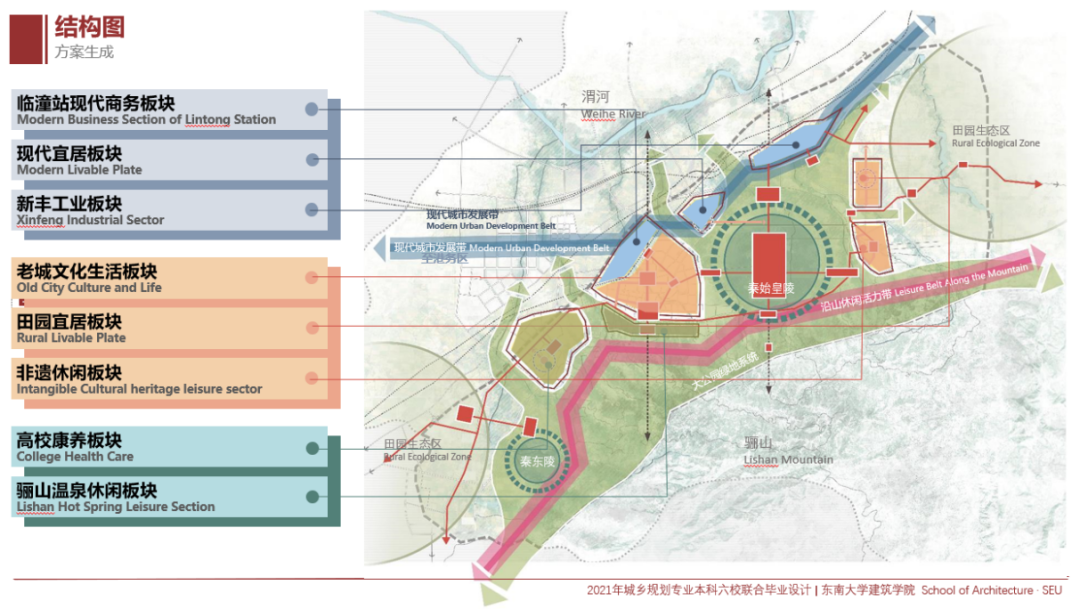 由中国城市规划学会提供学术支持的2021城乡规划学本科六校联合毕业设计,联合天津大学、东南大学、同济大学、重庆大学、清华大学、西安建筑科技大学的六校师生进行本科毕业设计教学活动,主题为“大西安·新临潼:骊山北麓中心城区有机更新规划”。