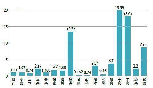 图10,主要农作物中的虚拟水含量(立方米/公斤),引自中国国家地理2018年05期早在20世纪90年代初,虚拟水的概念就被提出,用以计算食品和消费品在生产销售过程中消耗的用水量(图10)。2002年,荷兰学者进一步提出“水足迹”的概念,用于界定一定时间内消费的产品和服务所需要的用水量。这一概念被世界自然基金会(WWF)在2008年的《地球生命力报告》中引入,并用国家水足迹来计算一个国家用于农业、工业和生活的河水、湖水、地下水,以及供作物生长的雨水,用个人水足迹来计算一个人用于生产和消费的总水量。