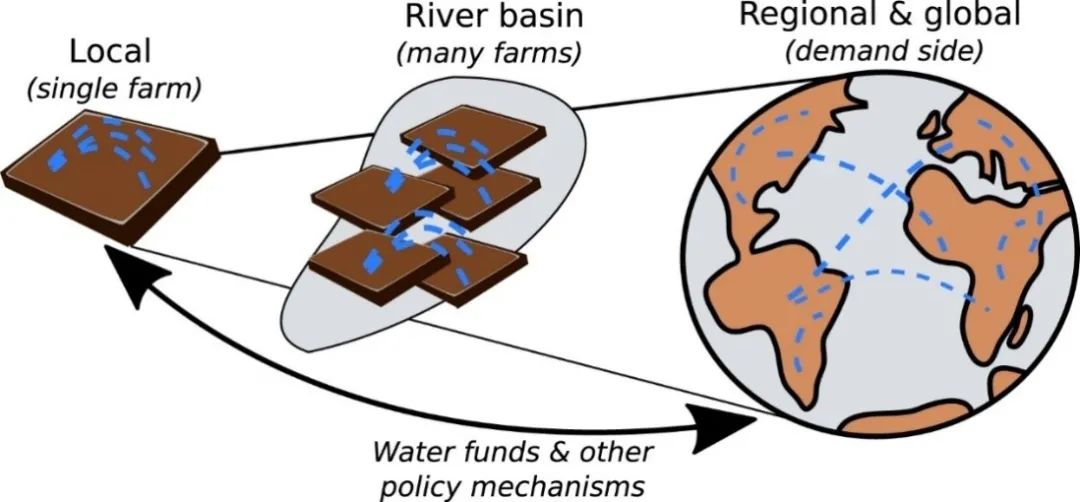 图16,可持续的集约化作物水分管理,来源https://doi.org/10.1088/1748-9326/11/9/091001此外,还应积极推动新技术运用和先进管理实践,重视更可持续的替代性生产方式升级。尽管1961年以来单位粮食生产的耗水量已经减少了一半,但提高农业用水效率的潜力仍然很大。在全球范围内,技术性灌溉节水和改善作物水管理空间巨大,即通过减少非生产性水消耗来增加作物水供应和降低灌溉用水,实现作物水管理与土壤和养分等管理之间的强大协同作用(图16)。恰当的干预措施可以进一步使全球农业用水缺口在2050年之前减少一半,并缓冲潜在的负面气候变化影响,这对保障粮食安全和缓解淡水供应至关重要。