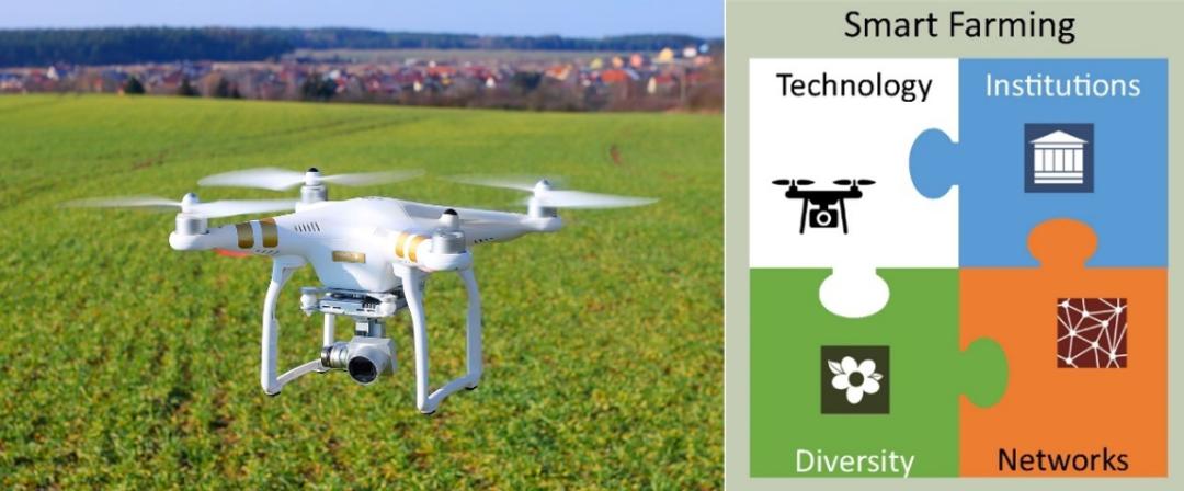 图17,农业生产与市场、政策和新技术的结合,来源https://doi.org/10.1073/pnas.1707462114农业发展经历过许多革命,几千年前的动植物驯化,几百年前的耕种改良和系统轮作,几十年前的育种改良和人造肥料、农药。如今,指数级增长的新技术应用表现出前所未有的破坏性潜力,正推动农业进入第四次革命(图17)。自动除草、施肥和收获的机器人,借助遥感信号和传感器管理牲畜的虚拟围栏,观测作物生长和土壤养分的自控无人机,帮助农民区分植物病害的可视化模型,以及通过传感器优化农药化肥和水的使用,多样化的创新和实践不断发生。
