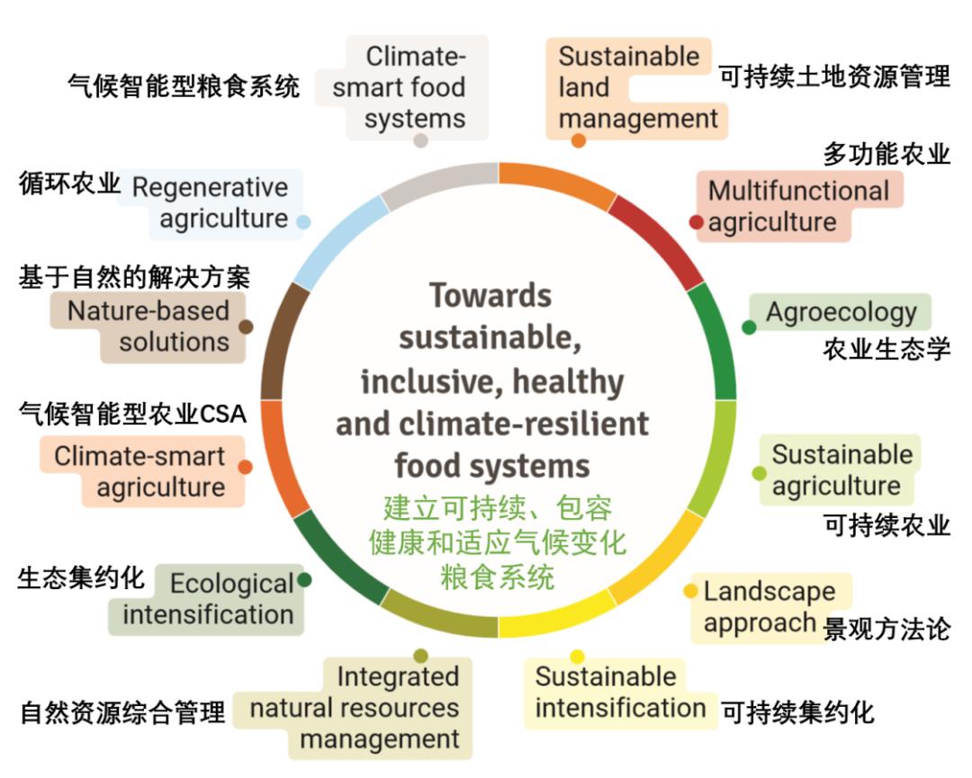 图20,描述和试图改进粮食系统的术语(自译),来源CCAFS《气候变化下改变粮食系统的行动》根据国际农业研究磋商组织气候变化、农业和粮食安全研究计划(CCAFS)联合联合国开发计划署等20家机构于2020年6月发布的《气候变化下改变粮食系统的行动》,这些年有着太多用于描述和试图改进粮食生产系统的术语、理论和方法(图20),但“我们的粮食系统让我们倍感挫败”。越来越多的文献集中在关于粮食系统无能为力的四种主要失败类型上:一是生产更多的粮食来喂养不断增长的世界人口;二是满足营养需求;三是在当前粮食系统中出现过度消费和消费不足的现象;四是粮食系统对环境和自然资源的负面影响。气候变化正日益对粮食系统产生严重的负面影响,建立可持续、包容、健康和适应气候变化的粮食系统,需要包括粮食系统在内的诸多变革。