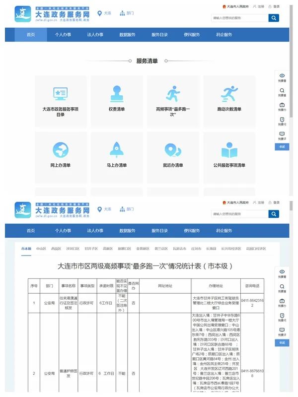 大连政务服务网公布市区两级高频事项“最多跑一次”事项清单