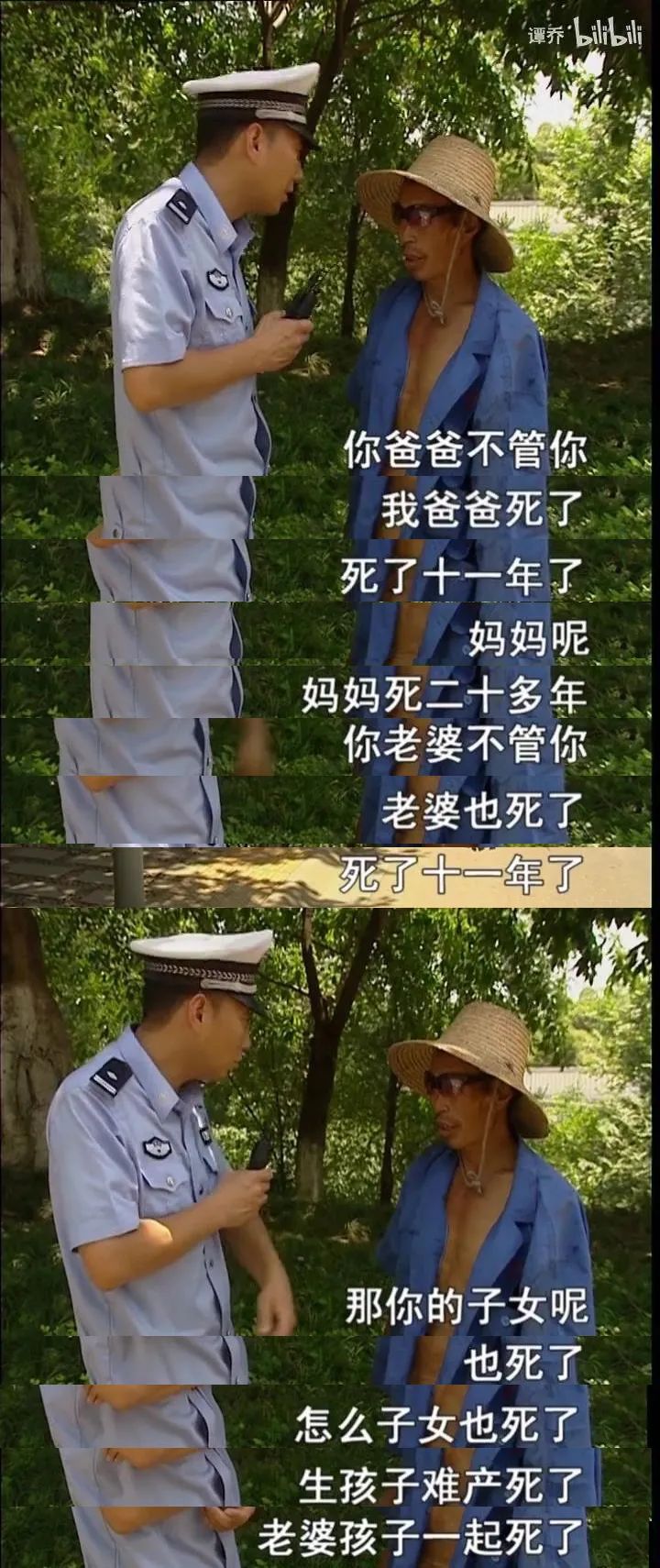 大爷的回答出人意料,也令人揪心。原来,大爷的父亲已死了十一年,母亲死了二十多年,哥哥死了十八年了。老婆因生娃娃难产,和孩子一起死了,也死了十一年。也就是说,在同一年里,大爷面临着接连失去父亲、妻子和小孩三位至亲的沉重打击。