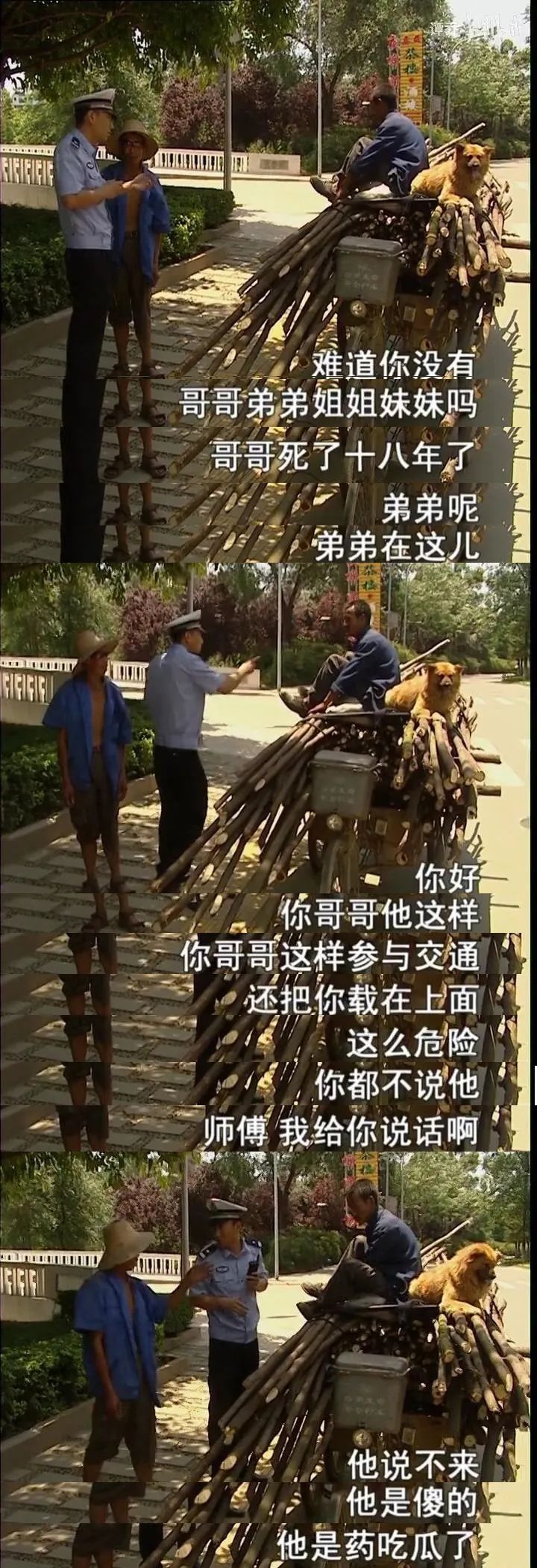 谭警官听到后,有些难以置信。大爷说,在车上坐着的是他弟弟。谭警官向让弟弟劝说一下哥哥,但是面对谭警官的询问,车上的弟弟无动于衷,四处环顾着并未答应。大爷这才告诉谭警官:“他说不来,他是傻的。他是药吃瓜了,他讲不来的。”