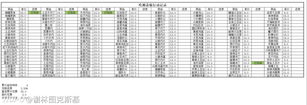 而这些密密麻麻的文字从他视网膜上划过,一个计划就从他脑海中呼之欲出:“今天偶然去了一家小店,发现盖饭种类好多,打算每天中午吃一种,看看能不能坚持下来。”@芸芸众生中的一粒尘埃在初次踏入盖饭胜殿时如是说。