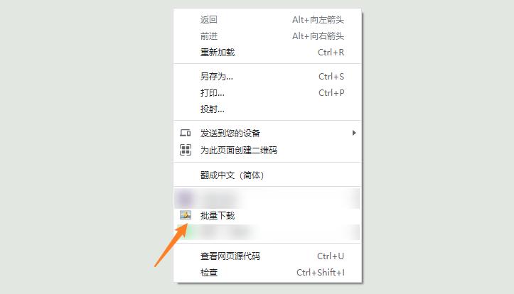 比如我们在微博页面,点击右键选择 Fatkun 的「 批量下载 」。
