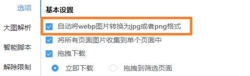 相比 ImageAssistant ,Fatkun 还提供了 webp 转换格式的功能。