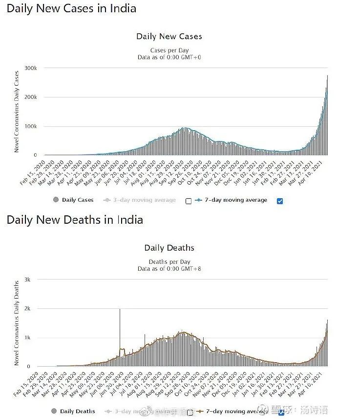 印度已连续7天单日新增病例超20万,在20日印度新增确诊人数接近30万,创了新高。疫情越来越严重,甚至有火葬场焚尸炉零件都烧融化,医疗系统崩溃、药物氧气不足、疫苗供应不上、火葬场要排队……