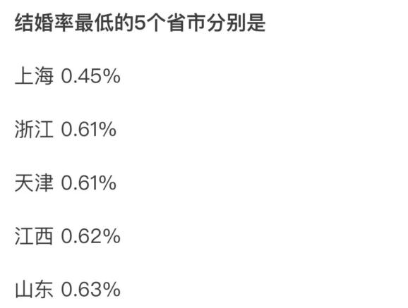 看看,上海的结婚率才0.45%,这是人性的扭曲还是道德的沦丧?哦,也可能是上海人最怕穷吧......