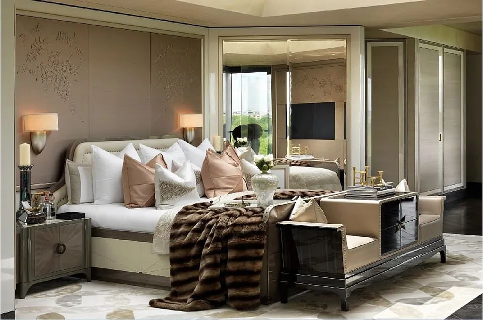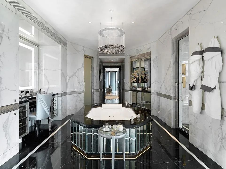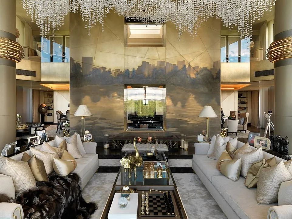 大理石地板和镜面墙只是标配,沙发上的靠垫套是丝绸的,家具表面包的是蛇皮和鳄鱼皮。对于这样的奢华装饰,英国每日邮报评论称:“这是一种礼貌的暗示,如此豪华的公寓所代表的阶级,是用钱也买不到的。”