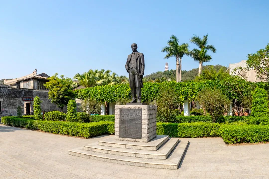 道路两边数十位江门籍院士的雕像