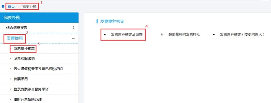 第一步:请登录国家税务总局上海市电子税务局:https://etax.shanghai.chinatax.gov.cn,点击【我要办税】--【发票使用】--【发票票种核定及调整】, 在【纳税人领用发票票种核定表】下方点击【增加】按钮,增加需要的票种信息,点击【下一步】提交。