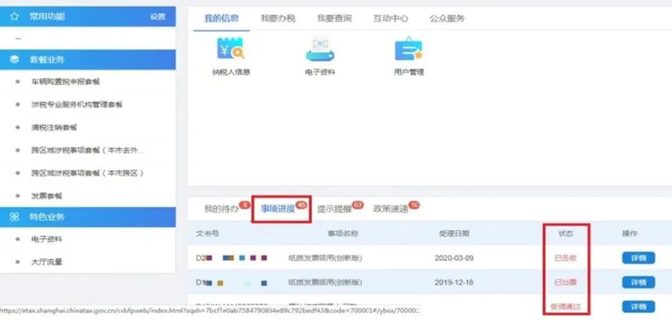 二、配送进度查询第一步:登录国家税务总局上海市电子税务局:
