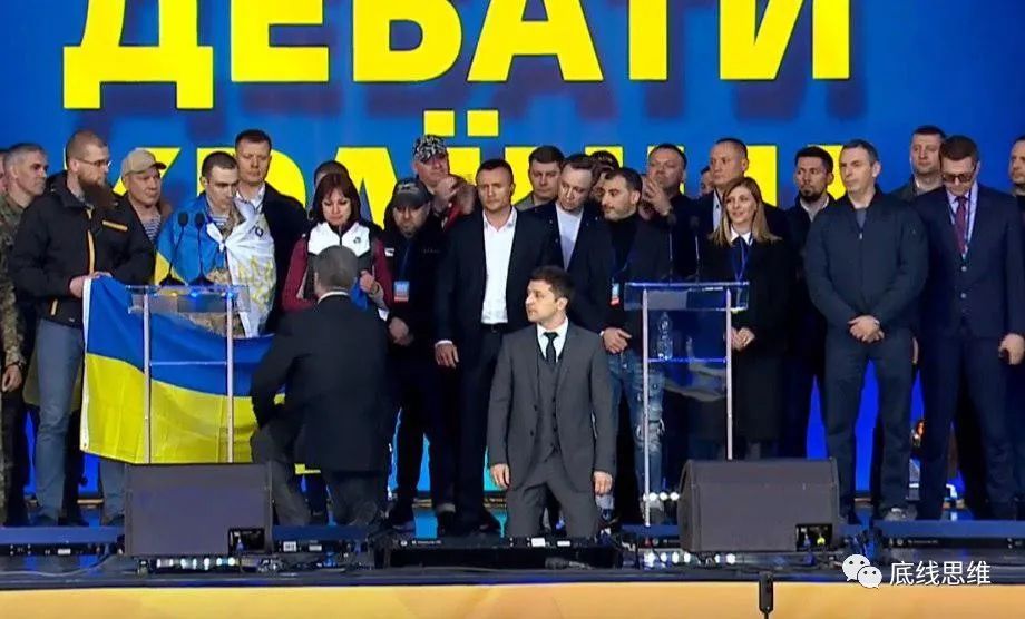 2019年4月19日,时任乌克兰总统的波罗申科与竞选对手泽连斯基在电视辩论中,提及顿巴斯冲突,泽连斯基邀波罗申科向冲突中的遇难者及其亲人下跪。视频截图而本次俄乌紧张态势背后也有“玩战争”的迹象。3月底,乌克兰总统泽连斯基签署并发布的新版《乌克兰军事安全战略》中涉及军事对抗或威胁的内容,提到“俄罗斯”21次,将俄罗斯定位为乌克兰的主要军事对手,而北约则被视为乌克兰的“救世主”。
