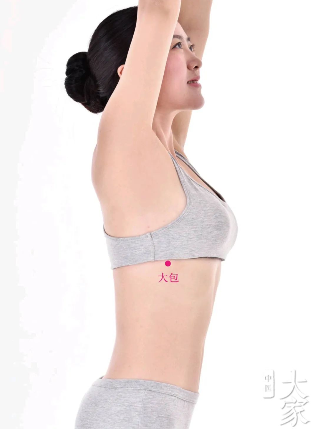 大包穴位于腋下6寸的位置,于腋中线上,第6肋间隙中。大包穴归属于足太阴脾经,为脾之大络。