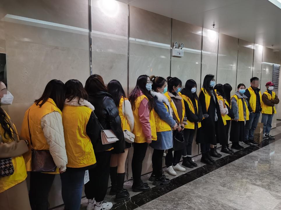 在经过先期侦查、掌握相关线索后,包河公安分局成立专案组并展开系列侦查活动,3月1日,包河分局责任区刑警二队全体人员兵分两路,分别前往位于滨湖两座写字楼的两家公司,现场抓获嫌疑人53人。