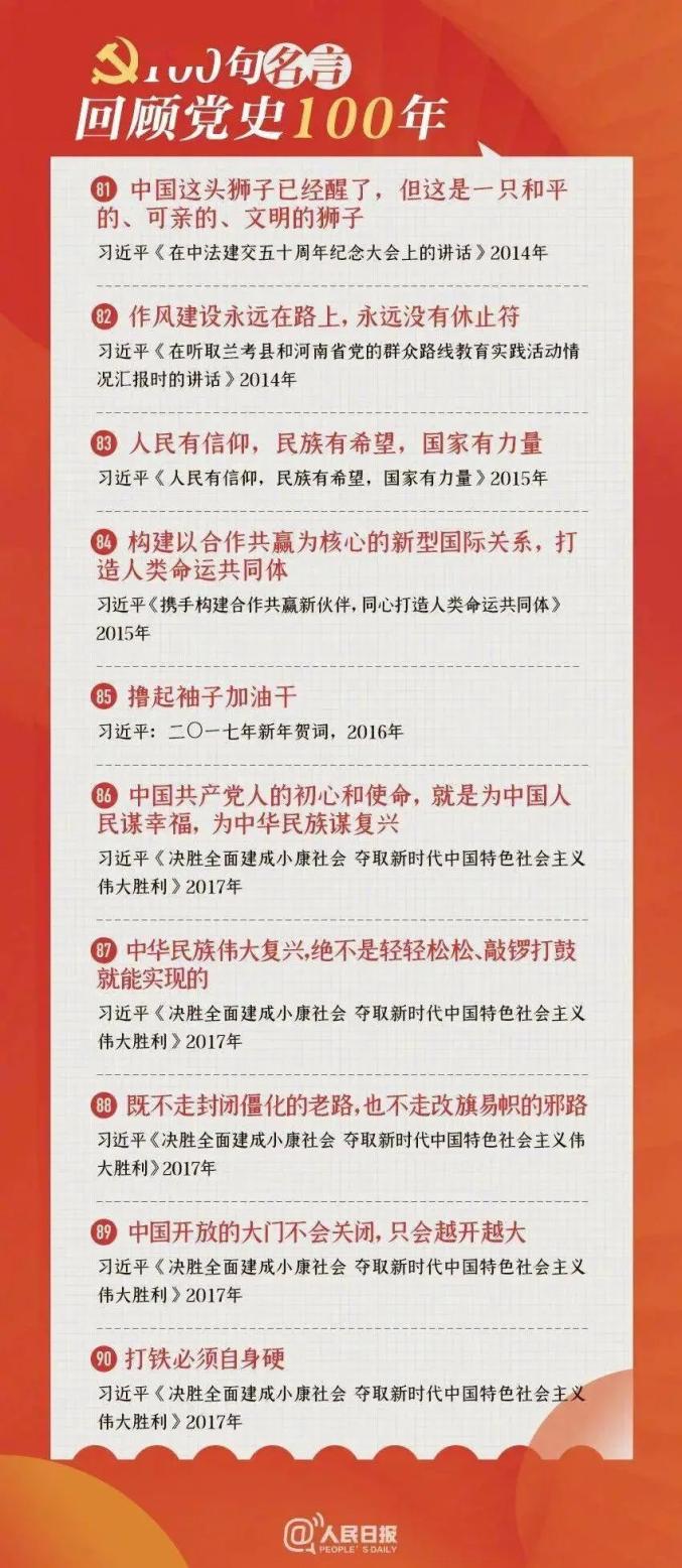 原标题:《【党史学习教育】每日一课|100句名言回顾党史100年》
