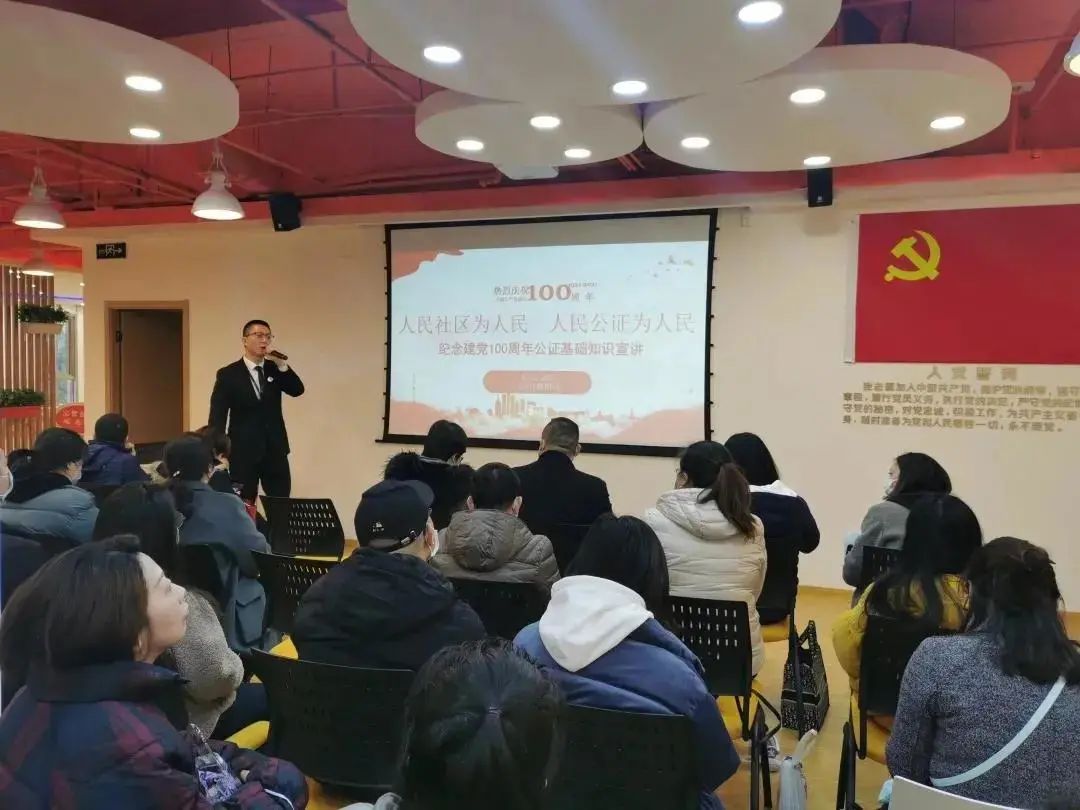 为庆祝建党100周年,落实“我为群众办实事”具体举措,引导人民群众主动学法、守法、用法,不断提升法治意识和法治素养,上海市东方公证处与上实社区服务中心联手,深入社区,开展公证知识系列讲座,为广大老百姓讲解公证案例、普及法律知识。