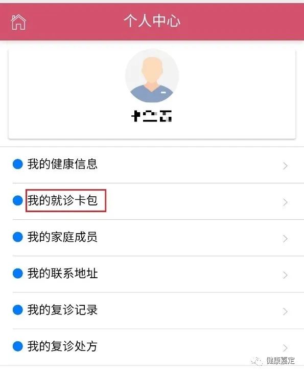 进入【个人中心】,点击【我的就诊卡包】-【添加】,系统会自动显示患者在我院使用过的就诊卡信息,点击【添加】完成绑卡。